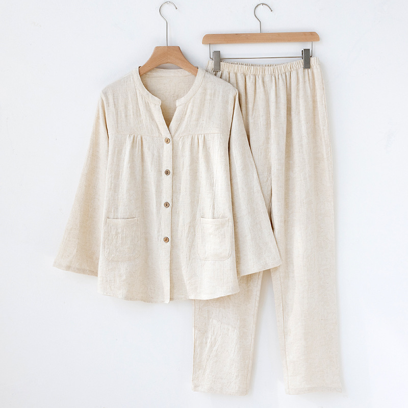 Women’s Japanese Style Loungewear combines timeless simplicity with premium comfort for the modern European home. This elegant V-Neck Long-Sleeve Pantsuit features a sleek, tailored silhouette that transitions effortlessly from rest to daily activities. Designed as a Solid-Color Pajama Set, it offers a clean aesthetic that fits perfectly into a refined capsule wardrobe. This Autumn Relaxed Fit Suit is the ultimate choice for those seeking Minimalist Cotton Loungewear that is breathable, soft, and sophisticated for the 2026 season.