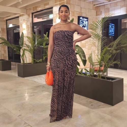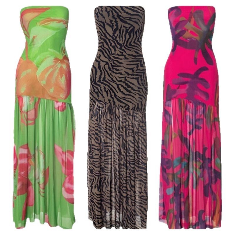 Product Content Zebra Print Maxi Dress style reaches a new level of bold sophistication with this striking floor-length silhouette. This captivating tube top mesh gown features a sleek, strapless neckline and a daring backless bodycon party dress fit that perfectly contours the figure. Designed as the ultimate sheer animal print beachwear, the lightweight mesh fabric flows into a translucent skirt for a high-fashion finish. Whether styled for a coastal sunset or as sexy strapless evening attire, this piece ensures a head-turning look that balances wild prints with an elegant, modern edge.