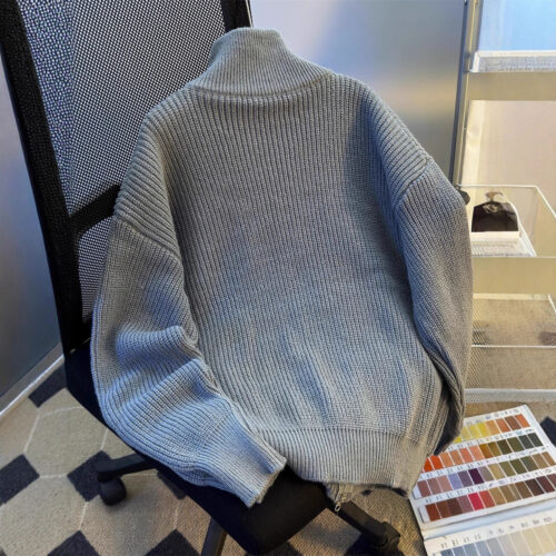Zip Up Sweater style meets urban edge in this men’s hip-hop retro cardigan, an essential for any modern streetwear enthusiast. This men’s knitted cardigan features a heavy-gauge ribbing that provides exceptional warmth and a structured silhouette. Designed as a retro hip hop sweater, it offers a nostalgic aesthetic paired with contemporary quality. The oversized stand collar jumper fit ensures comfort and a relaxed look, making it perfect for layering over tees. This streetwear knit jacket transitions effortlessly from casual hangouts to city streets, delivering a high-sense finish to your winter wardrobe.